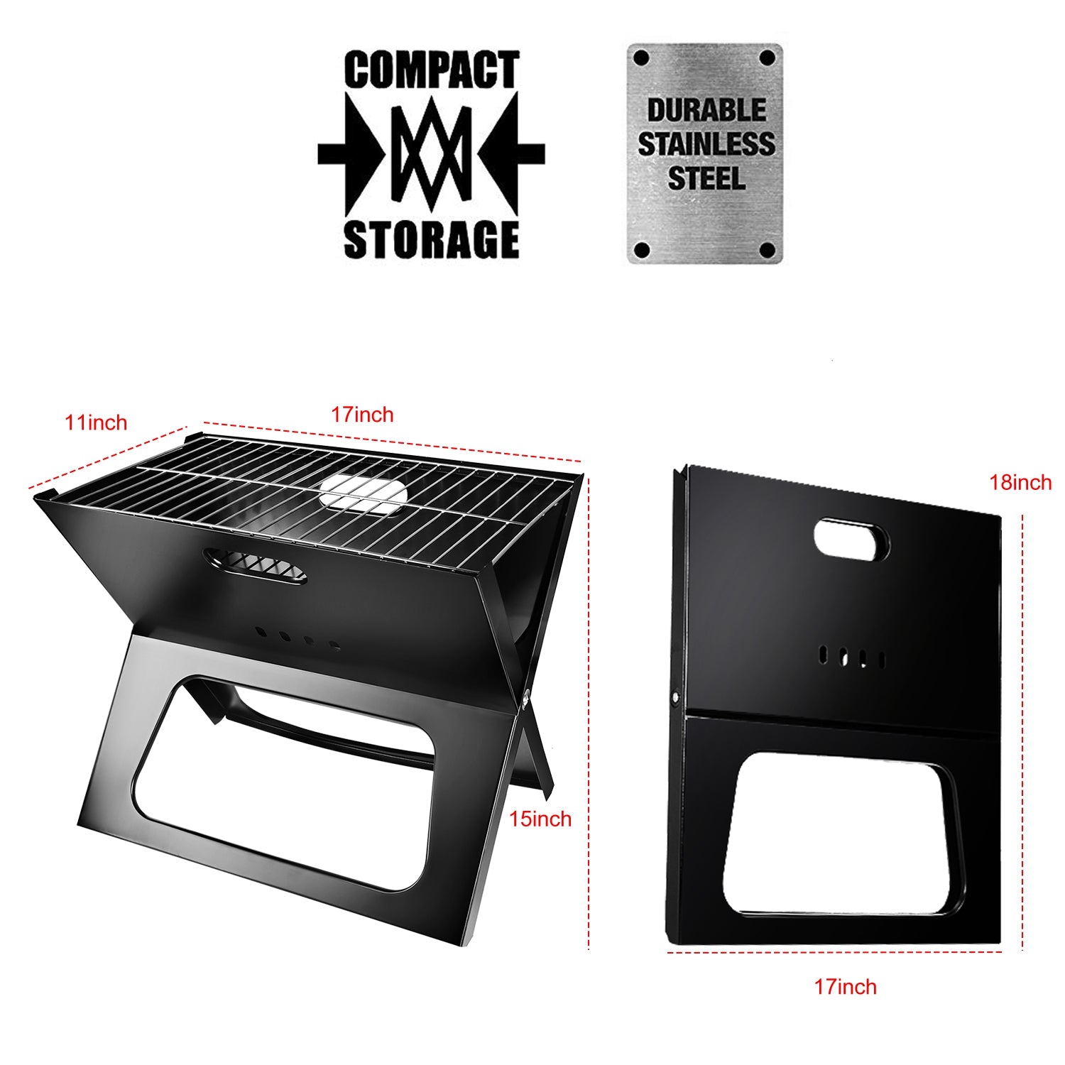 - **Easy Setup*: Simple two-step set up makes this grill a must for grilling on the go. When it is unfolded,it forms a triangular support on ground to stay stable during use.