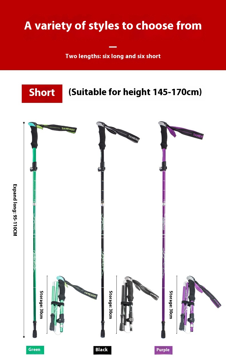 Alloy Foldable And Portable Telescopic Hand Hiking Alpenstock