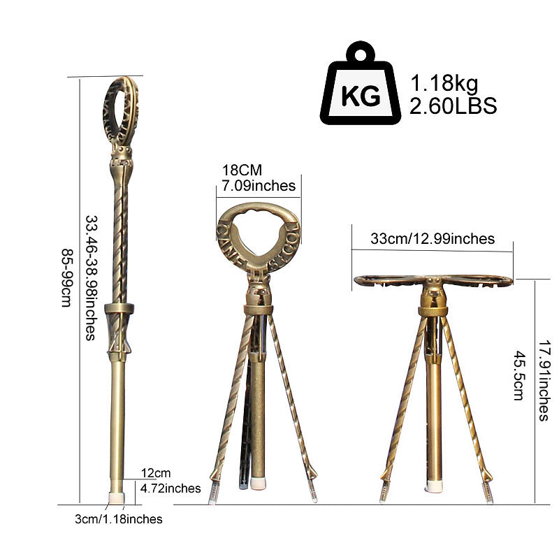 The cane is adjustable in length from 85-99cm, and the tube diameter is 3cm.