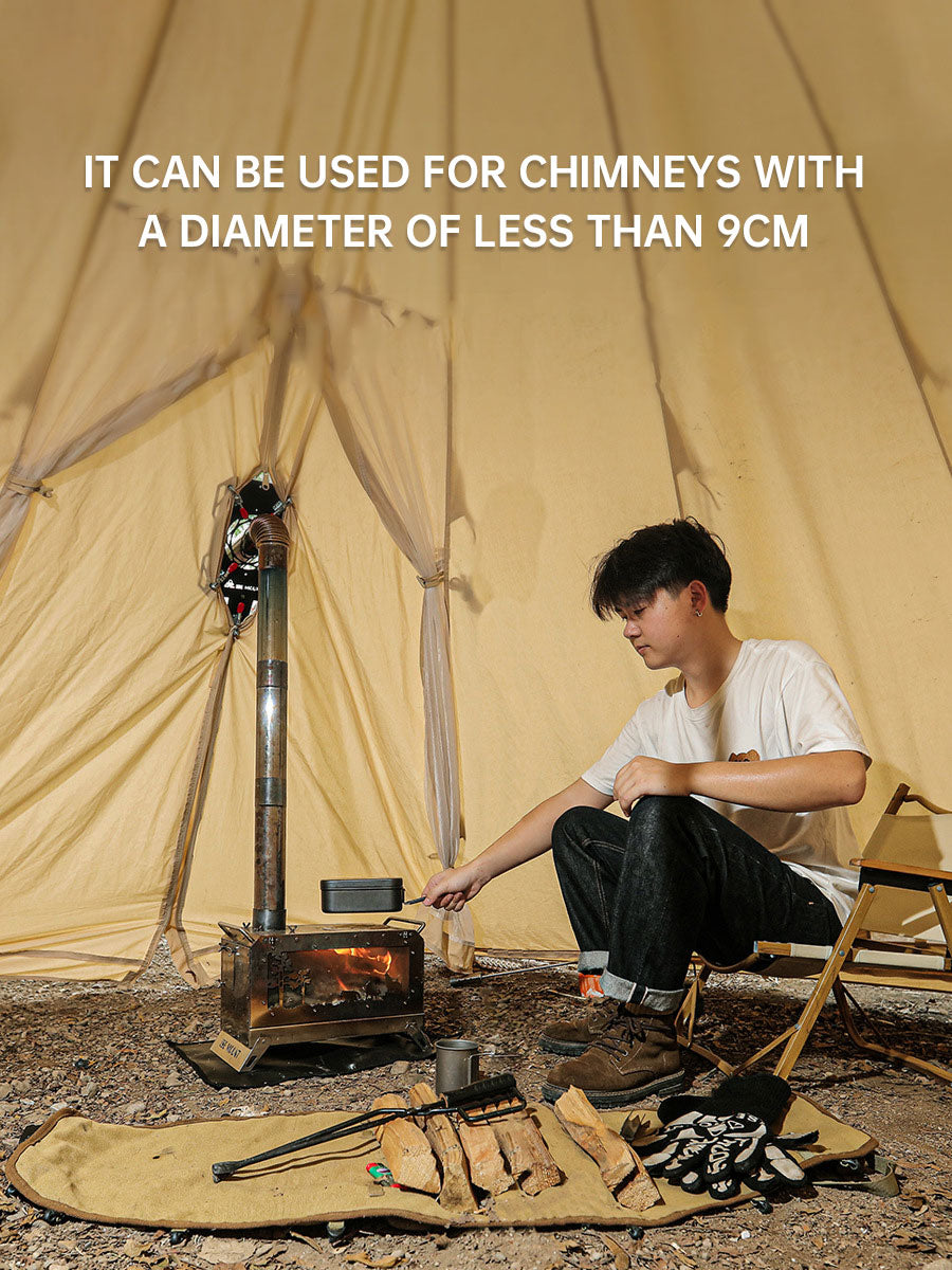 Hollow out design prevents heat transfer to the tent and prevents spontaneous combustion.