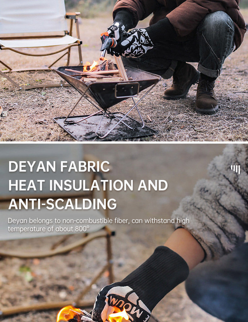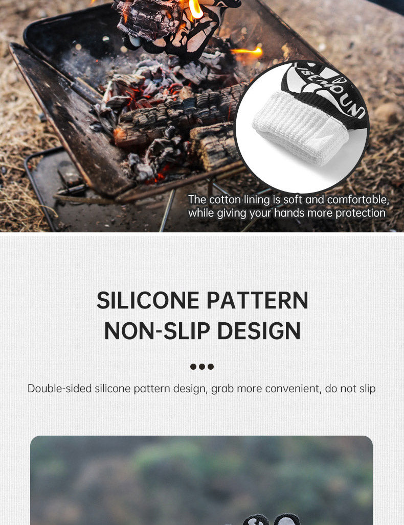 Outdoor 800 degree heat resistant gloves, thermal insulation and anti scald gloves, silicone BBQ barbecue oven thickened gloves