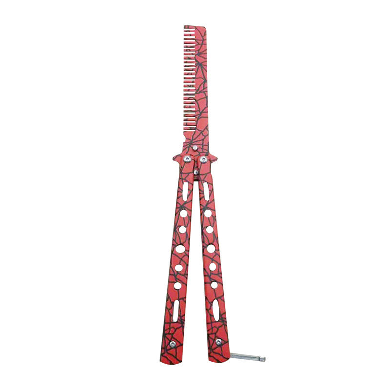 Outdoor Foldable Comb Stainless Steel Practice Training Butterfly Knife Comb Beard Moustache Brushe Salon Hairdressing Hair Styling Tool