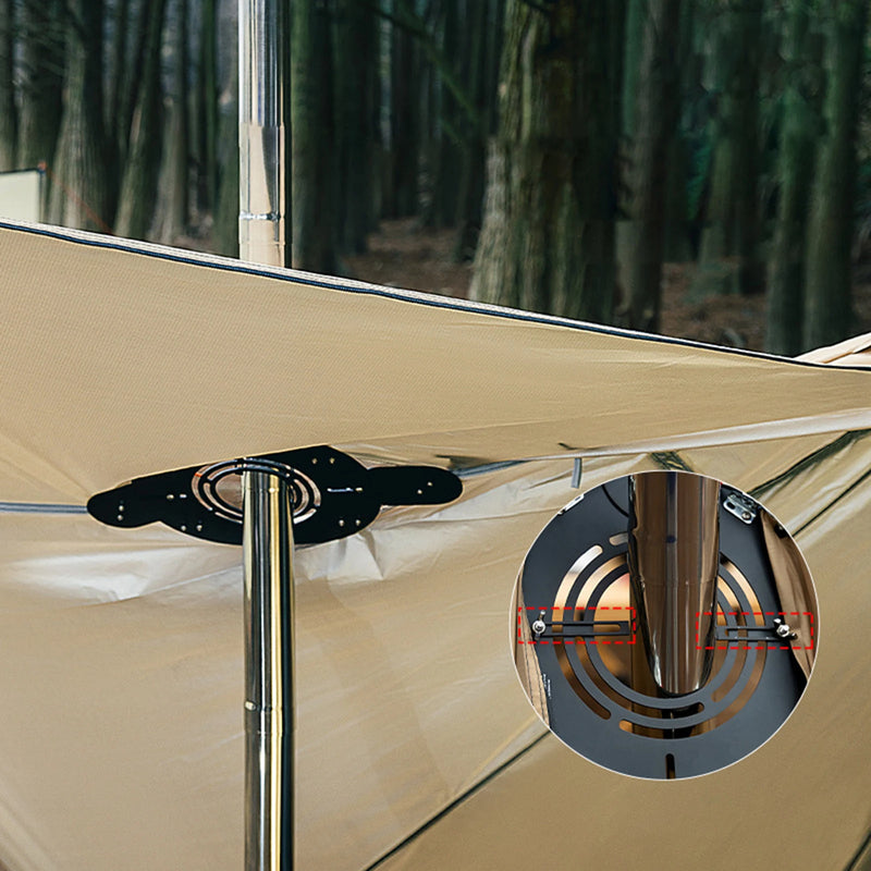 【Punch Free】Tent Stove Jack is convenient and easy to use, it can protect the tent, and the hole free design allows you to use it without punching holes in the tent.